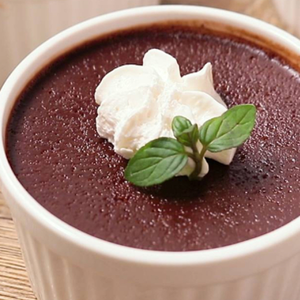 なめらかな口当たりがおいしいチョコプリンのレシピです。生クリームを使っていないので、やさしい味わいに仕上がりますよ。最後にホイップクリームとミントをトッピングすれば、まるでカフェのような贅沢さ。今回はビターチョコレートを使用していますが、お好みの甘さのチョコレートで試してみてくださいね。