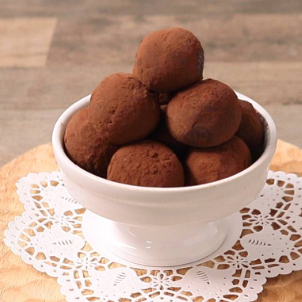 コロンとした見た目がかわいい、チョコレートトリュフのレシピです。チョコレートと生クリームのまろやかなおいしさは、子どもから大人まで大好きな味。片手でパクパクと食べられるので、おやつにもぴったりです。材料が少ないので、初めてのお菓子作りにもおすすめですよ。