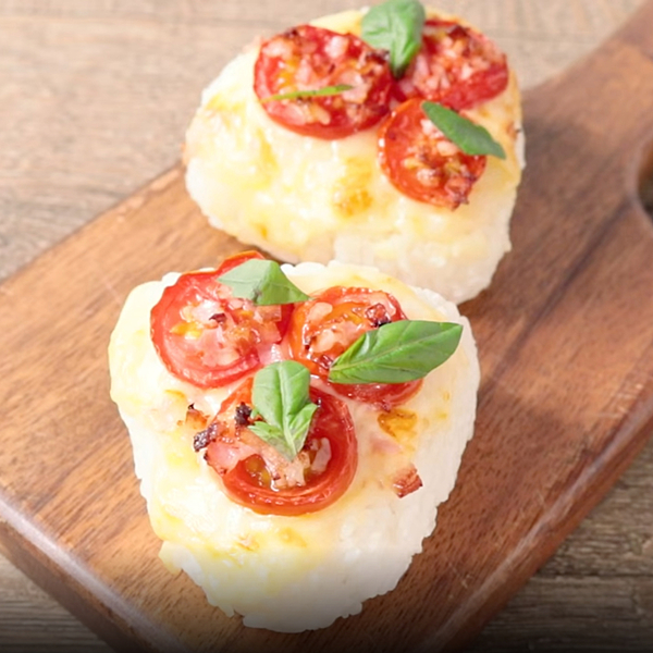 彩りがよく見た目も華やかな、ピザ風焼きおにぎりのレシピをご紹介します。握ったごはんにチーズとベーコン、トマトをのせ、トースターでこんがりとピザ風に仕上げました。とろとろのチーズにベーコンの旨味とトマトの酸味が合わさり、やみつき間違いなしのおいしさ!できたてを食べれば、思わず食べ進める手が止まりません。具材をのせるだけで簡単にお作りいただけますので、レシピを覚えておくと便利です。