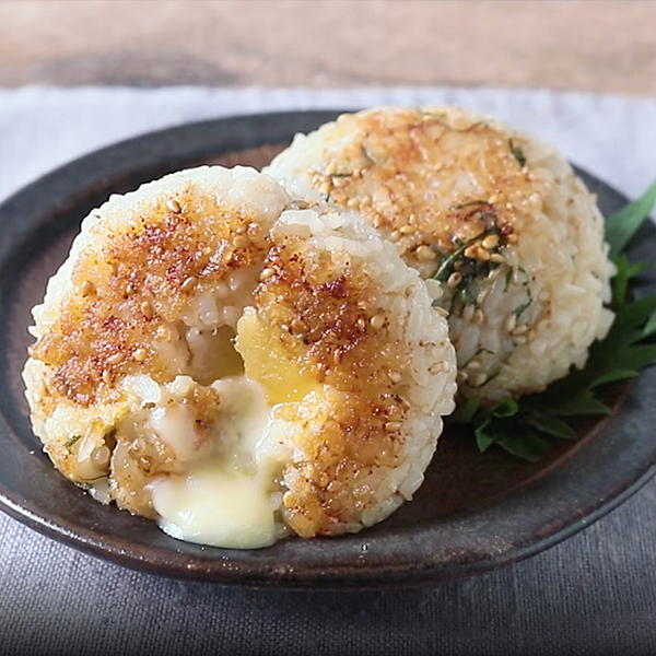 一口食べるととろけるチーズが出てくる、明太子と大葉のチーズ焼きおにぎりを作ってみましょう!大葉と明太子をごはんと合わせ、チーズを包み込むように握り、ごま油で焼きあげました。明太子とチーズの旨味の中に、大葉の爽やかな風味がアクセントに!白いりごまの食感も楽しく、満足度の高い一品です。小ねぎを加えたり、海苔を巻くなどアレンジしてもおいしいですよ。明太子はたらこでもお作りいただけますので、ぜひ作ってみてくださいね。