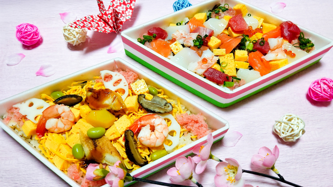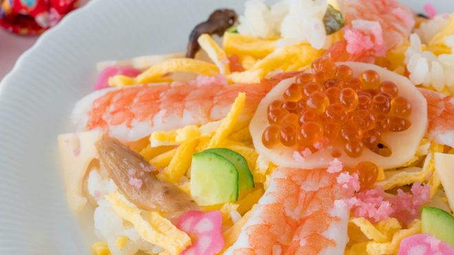 【ちらし寿司】には「長寿」を意味するエビ、「遠くまで見通せる」レンコン、「金銀財宝」を表す錦糸卵といった縁起のよい具材がよく使われますよね。見た目も華やかでお祝いの席にぴったりな一品であるため、ひな祭りの定番になったようです。