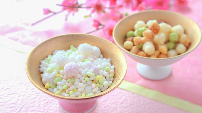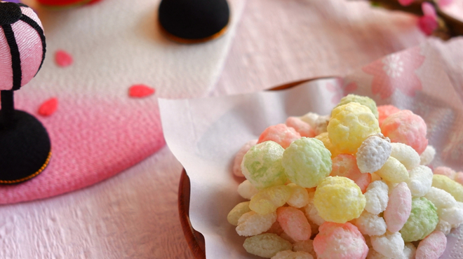 まずは定番のものから見てみましょう。ひな祭りの食べ物といえば、多くの人が「ひなあられ」をイメージするのではないでしょうか。