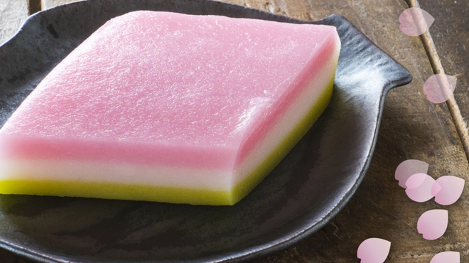 京都にはひきちぎりのほかにも、ひな祭りで定番のお菓子があります。京都の学校では桃の節句の時期になると、給食で三色ゼリーが出るというのが定番なのだそうです。