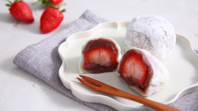 春から旬を迎えるいちごを使った「いちご大福」も、ひな祭りにおすすめの食べ物。ひな祭りでは求肥に着色したり、着物の衿(えり)のように左右で重ねてひな人形のような見た目に仕上げて販売するお店もあるようです。おうちでも試してみたいですね。