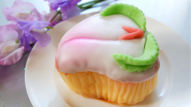 砂糖菓子がのっているので甘そうな見た目をしていますが、カステラ部分の甘さは控えめで、上品な味わいを楽しめます。