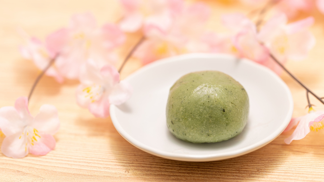 菱餅の解説でも触れましたが、古代中国の上巳節で食べられていた母子草の草餅がもととなって、日本では邪気を払うとされる「よもぎを使った草餅」が食べられるようになりました。ちょうどひな祭りの頃から旬を迎えるよもぎを使った和菓子は風味がよく、季節を感じられる香りを楽しめます。