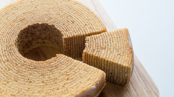 輪切りにすると樹木の年輪のように見えることから「バウム(木)・クーヘン(焼き菓子)」という名が付けられたと言われています。