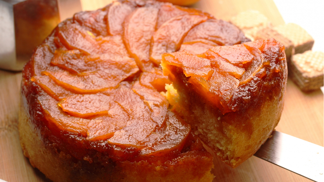 バターケーキに生のりんごをのせて焼き上げた、しっとりふんわりとした食感が魅力。生地にスパイスやドライフルーツを混ぜたりと、各家庭によってさまざまなレシピがあります。