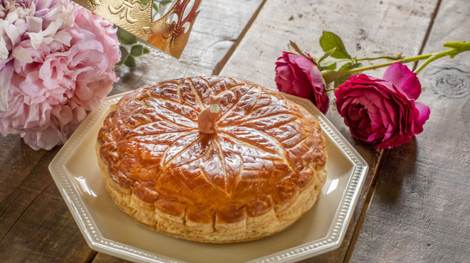 「王様の菓子」という意味で、フランスの新年のお祭りに食べるアーモンドクリームパイのことです。