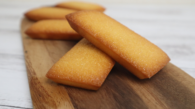 ワインの名産地であるボルドーの郷土菓子で、蜜ろうを塗った型に卵黄や小麦粉を使った生地を流して焼きあげます。