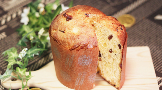 イタリア独自の酵母であるパネトーネ種を使った、大きなドーム状のパン菓子です。