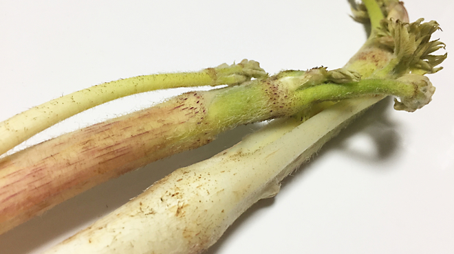 うぶ毛が全体的にびっしりと生えていて、茎が白くシャキッとしているものが新鮮です。