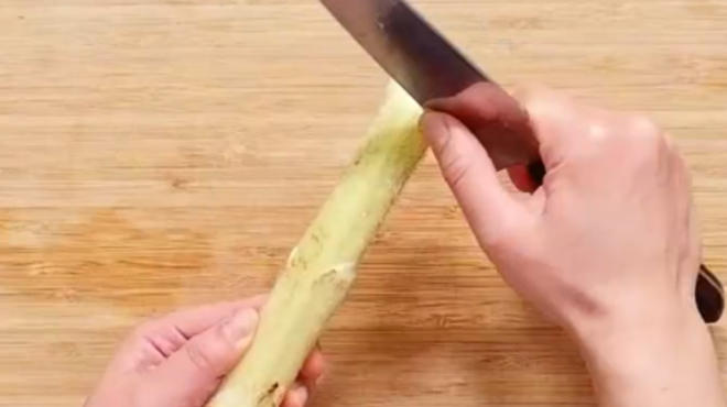 茎の表面にはうぶ毛があるため、口当たりをよくするため、やさしく取り除きます。