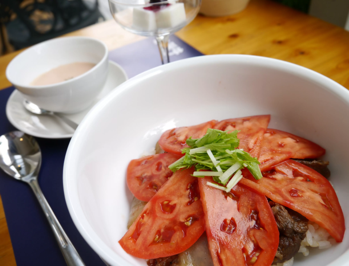 下呂の温泉街を歩いていると見えてくるバラの映える白い建物が、飛騨牛レストラン「ブラン・デュ・エトワール」です。下呂は実はトマトが特産な事はご存知でしたか?下呂のトマトをふんだんに使用したトマト丼は下呂温泉街の名物の一つです。甘辛いタレが絡んだ飛騨牛とトマトの甘酸っぱさが絶妙な癖になるどんぶりを是非一度お試しください!スープやデザート、お米など、地元食材をふんだんに使用しているのもこちらのお店の魅力です。