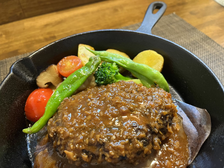 下呂駅から徒歩5分、温泉街からもほど近い「リゴロリゴロ」は創作フレンチが楽しめるカフェレストランです。地元の牧場の方が育成した地ビーフ:通称「光夫牛」を使用したハンバーグを提供しています。飛騨牛と比較すると脂身が少なく、ツナギやスパイスを極力少なくしているので、赤身のつよい旨みをより楽しむことが出来ます。また、ショーケース内のスイーツ、特になめらかプリンとガトーショコラも人気ですので、お食事に合わせてお楽しみくださいませ。