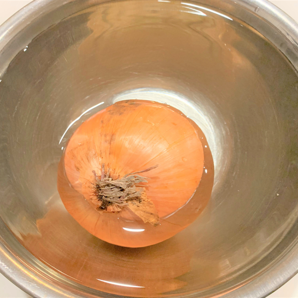 まずは、玉ねぎを丸ごと、水に浸けます。