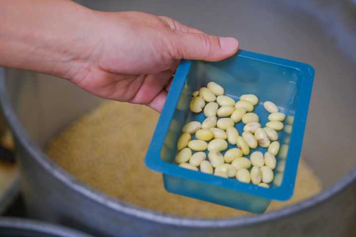 その後豆乳を混ぜながら、じっくりと温度を上げていきます。80度に達したら「にがり」を加え、すると豆腐がゆっくりと固まり始めます。この待つ時間が、手作り体験の醍醐味となるのです。