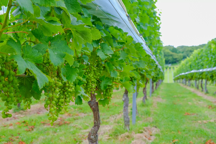 自社でぶどうの栽培から醸造、販売までを手がけている「中伊豆ワイナリー」。敷地内には10ヘクタールのぶどう畑が広がり、実際に畑の中に入れたり、事前予約をすれば乗馬体験で畑を巡ったり、大人も子どももワクワクするアクティビティがそろっています。