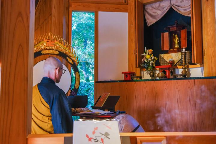 約30分間の朝課により、魂入れと祈祷が粛々と進みます。読経の最中には、参加者1人1人の名前が読み上げられ、お焼香で読経に参加する場面も。静寂の中で響く経文とお香の香りが、心の奥まで染み渡っていきます。