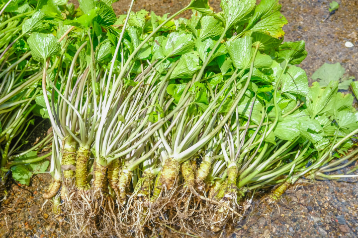 加えて130年前に開発された「畳石式わさび田」(2018年世界農業遺産認定)の栽培方法が根付き、今では産出額が全国シェアの7割を誇る高品質なわさびの産地として知られています。