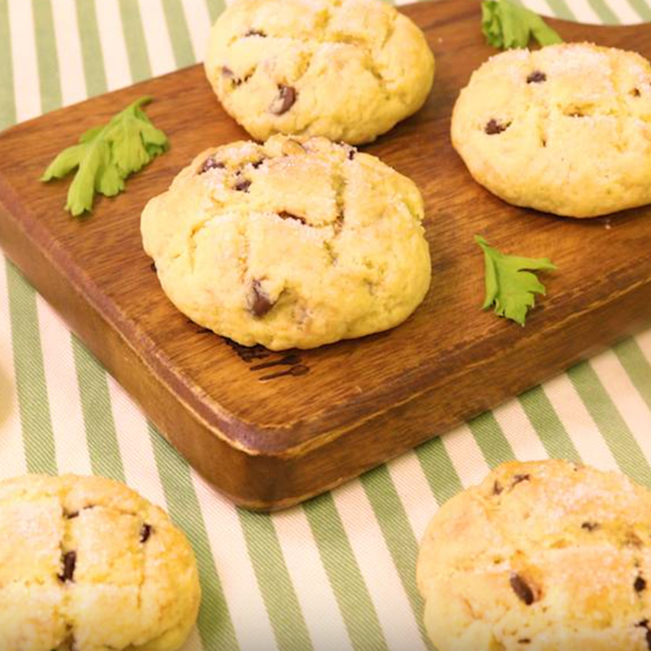 小さなメロンパン型がかわいらしい、チョコチップクッキーのレシピです。材料を順番に混ぜ合わせたら丸く成形し、格子状に切り込みを入れて焼くだけ!ホットケーキミックスのやさしい甘さにチョコチップの食感がアクセントになって、どんどん手が伸びるおいしさです。ココアパウダーや抹茶パウダーを加えるアレンジもおすすめ!ぜひお試しくださいね。
