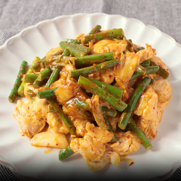 パンチのある味わいの、鶏マヨキムチをご紹介します。鶏むね肉とニンニクの芽、キムチ、調味料を炒めるだけのお手軽レシピ。風味のよいニンニクの芽と、キムチの辛味と酸味、オイスターソースのコクが鶏むね肉に絡んで、たまらないおいしさです。マヨネーズがまろやかさをプラスしてくれるので、とっても食べやすいですよ。