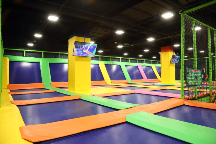 アイススケートだけではなく、館内には元気いっぱいに遊べるトランポリンエリアも併設されています。親子や友人グループにも人気のアクティビティです。