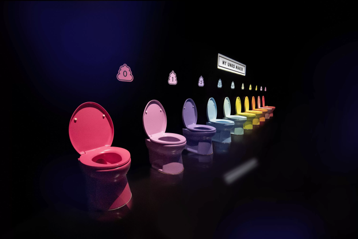 一歩足を踏み入れれば、色とりどりの装飾と可愛らしいうんこに囲まれた世界が出迎えてくれます。巨大な「ウンコ・ボルケーノ」やカラフルな便器に座ってマイうんこを生み出す「MYUNKOMAKER」、便器をキャンバスに絵を描ける「えがけ!みんなのうんこ」など、驚きと笑いがあふれる空間です。