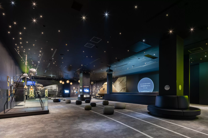 広々とした「スペースLABO」エリアにでは、宇宙や科学を体感できる装置や模型がそろっています。子どもたちの好奇心をくすぐり、学ぶ楽しさを育てます。