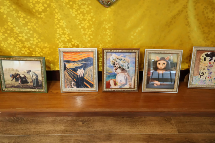 敷地内やカフェを2匹の猫、ネネちゃんとバロンくんが自由に過ごしています。おとなしくて賢い猫で、お店の看板猫になっています。広いカフェの中には、猫の祭壇(さいだん:飾り台)があります。