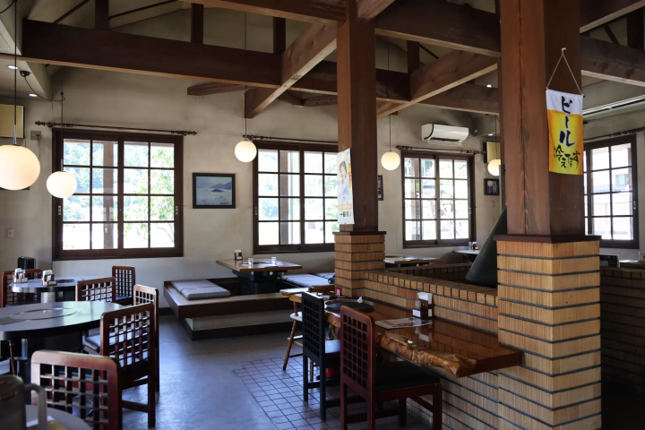 ステーキと焼肉で新見特産の千屋牛が味わえるほか、千屋牛を使った軽食セットもおすすめです。冬は暖炉(だんろ:暖房用の炉)もあり、雰囲気の良いレストランです。