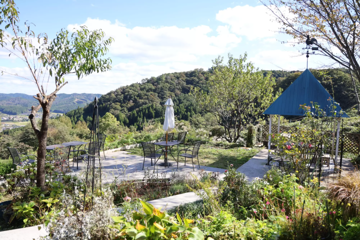 庭のテラスからは大自然が一望できます。風も心地よく、揺れるススキ(日本の秋の草)が秋を感じさせてくれました。イングリッシュガーデン(イギリス式庭園)でのティータイムはきっと素敵な体験になります。
