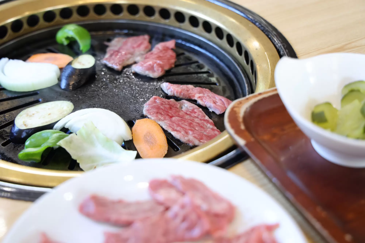 焼肉も味わってみました。赤身の旨味と脂の香ばしさのバランスが絶妙で、焼肉にすると余分な脂が落ち、噛むほどに甘みが広がり、たくさん食べられそうな気持ちになります。こちらもタレも美味しいですが、岩塩が特におすすめです。もともと脂がしつこくなく、食後にもたれにくいので、幅広い年齢層に人気があります。