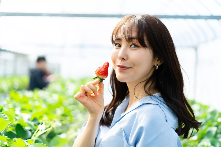 摘みたての真っ赤ないちごを頬張りながら、二人で笑顔を交わす時間は、特別な思い出に!