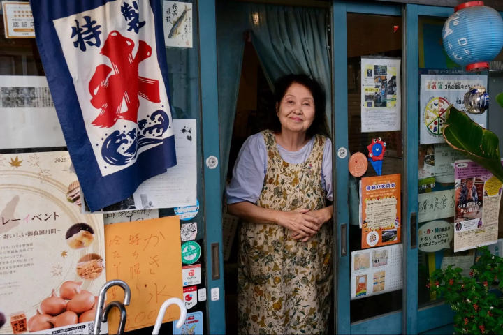 「地元の美味しいものが食べたい」と伝えると、しげさんはすぐに小さな鮮魚店へ。しげさんが新鮮なイカを注文すると、すぐにお刺身が。彼女が用意してくれたお醤油でいただくお刺身は格別でした。一人では入るのをためらってしまいそうな、英語のメニューもなく、人とすれ違うのもやっとの小さなお店ですが、しげさんの紹介のおかげで、すぐに親しみやすい場所になりました。