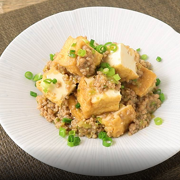 ごはんのおかわり必至!厚揚げの肉味噌炒めのご紹介です。ジューシーな豚ひき肉や厚揚げを炒め、味噌やきび砂糖を使ったコクのある甘辛味に仕上げました。厚揚げを噛むほどにジュワっと旨味が広がり、あと引くおいしさです。とろみがついているので、ごはんにのせて丼にするのもおすすめですよ。ぜひお試しください。